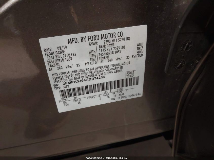 2019 FORD EDGE 2019 року Бензин, 2.0, Передній привід, vin - 2FMPK3J94KBB74268 з США