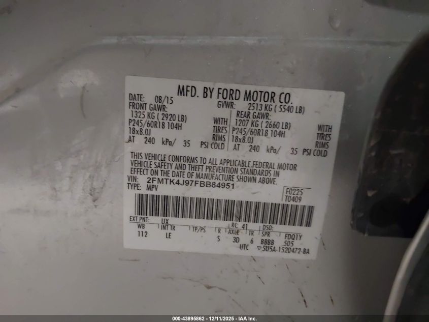 2015 FORD EDGE 2015 року Бензин, 2.0, Повний привід, vin - 2FMTK4J97FBB84951 з США