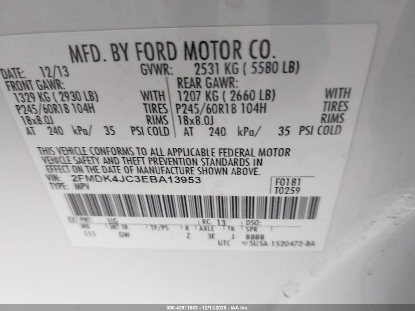 Колір БілийЦиліндри 6Привід Повний привідVIN 2FMDK4JC3EBA13953Стан Заводиться та їде (перевірено)Ушкодження Права сторона AutoRIA