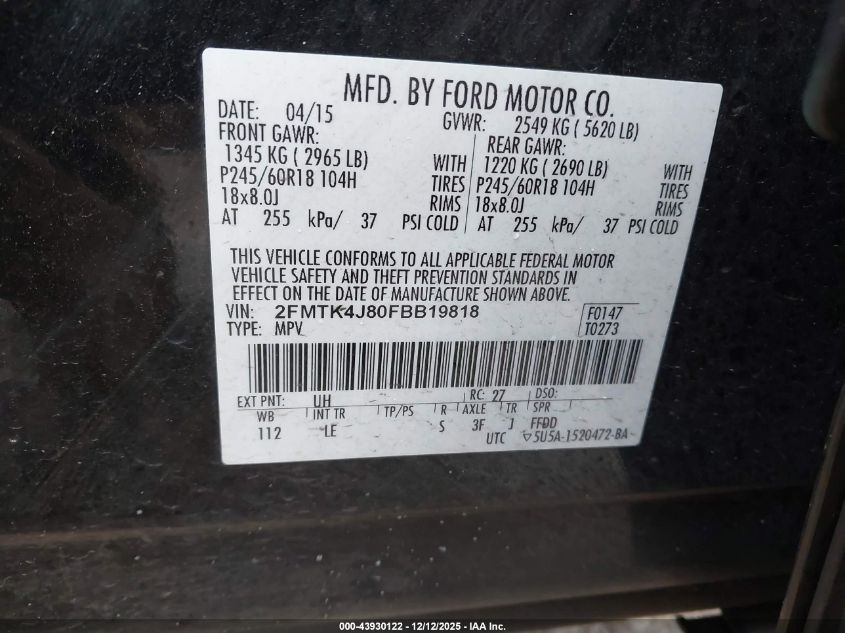Колір ЧорнийЦиліндри 6Привід Повний привідVIN 2FMTK4J80FBB19818Стан Заводиться та їде (перевірено)Ушкодження Передня або задня AutoRIA