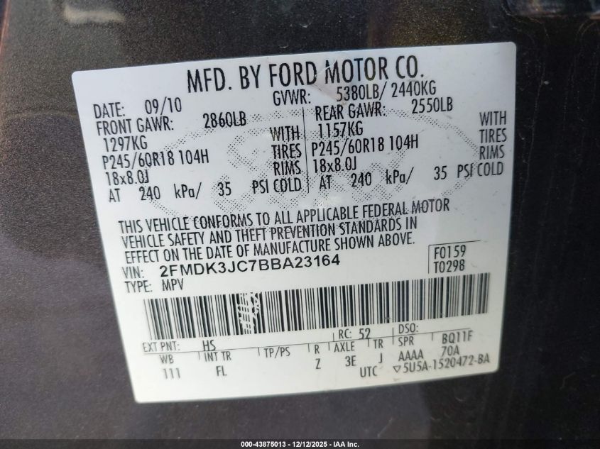 Колір КоричневийЦиліндри 6Привід Передній привідVIN 2FMDK3JC7BBA23164Стан Заводиться та їде (перевірено)Ушкодження Передня або задня AutoRIA