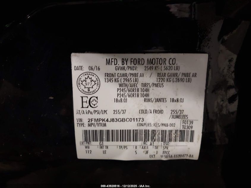 2016 FORD EDGE 2016 року Бензин, 3.5, Повний привід, vin - 2FMPK4J83GBC01173 з США