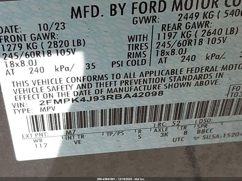 Колір СірийЦиліндри 4Привід Повний привідVIN 2FMPK4J93RBA42098Стан Заводиться та їде (перевірено)Ушкодження Передня або задня AutoRIA