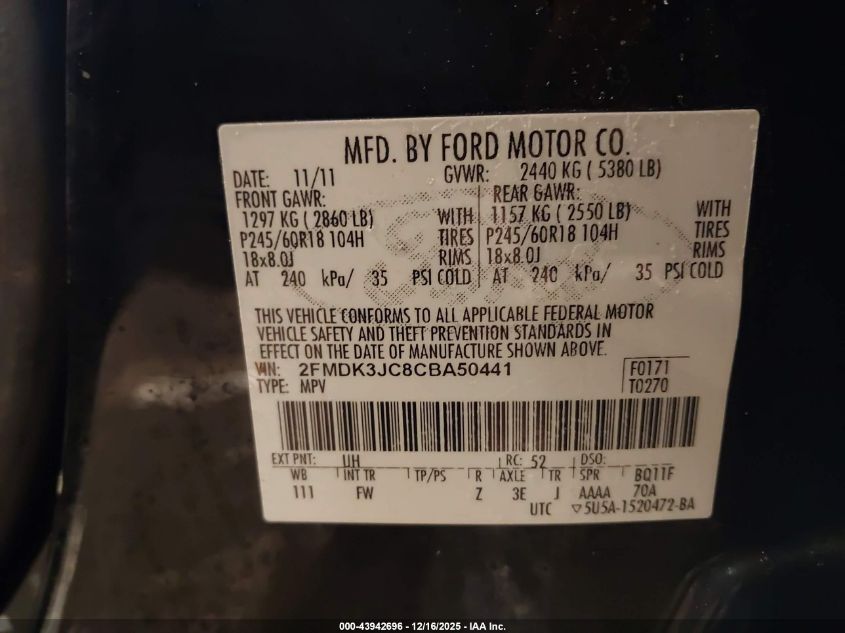 Колір ЧорнийЦиліндри 6Привід Передній привідVIN 2FMDK3JC8CBA50441Стан Заводиться та їде (перевірено)Ушкодження Передня або задня AutoRIA