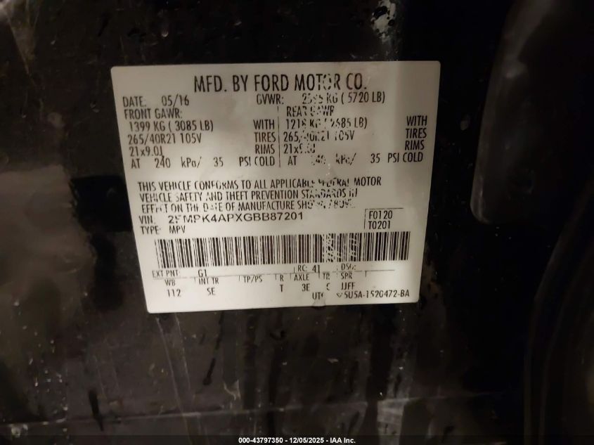 2016 FORD EDGE 2016 року Бензин, 2.7, Повний привід, vin - 2FMPK4APXGBB87201 з США