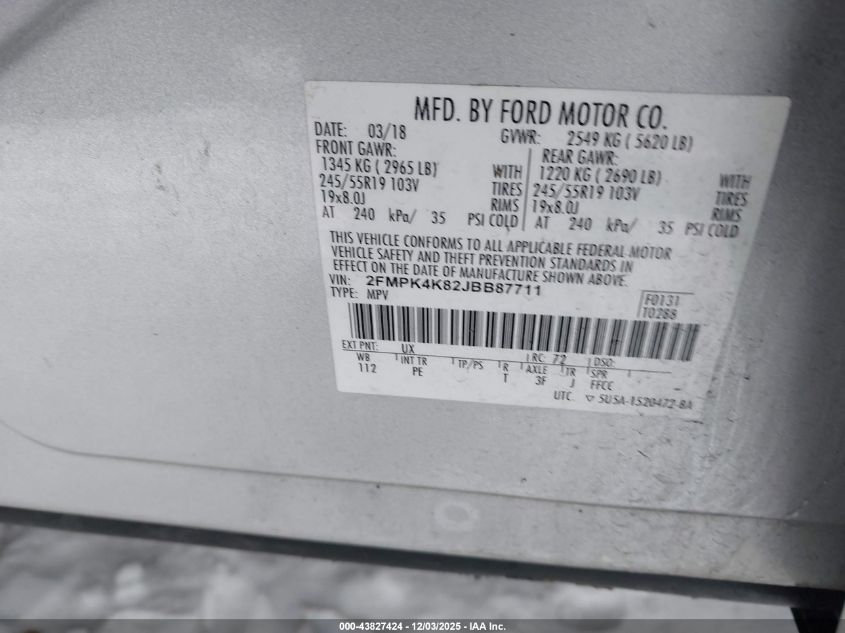 Колір СрібнийЦиліндри 6Привід Повний привідVIN 2FMPK4K82JBB87711Стан Заводиться та їде (перевірено)Ушкодження Передня або задня AutoRIA