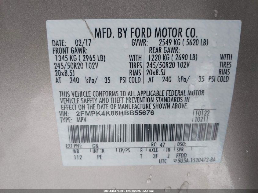 2017 FORD EDGE 2017 року Бензин, 3.5, Повний привід, vin - 2FMPK4K86HBB55676 з США