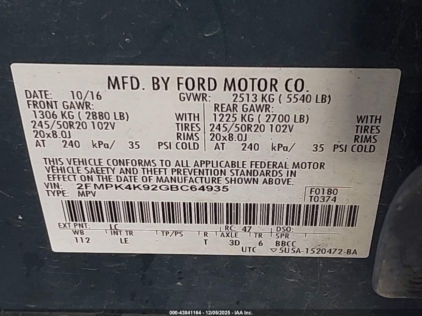 2016 FORD EDGE 2016 року Бензин, 2.0, Повний привід, vin - 2FMPK4K92GBC64935 з США