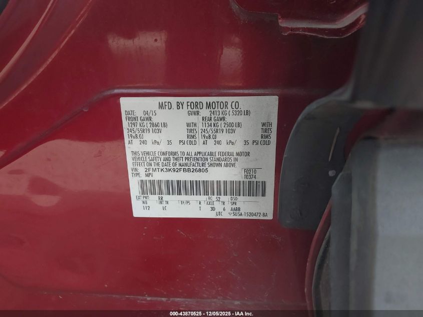 2015 FORD EDGE 2015 року Бензин, 2.0, Передній привід, vin - 2FMTK3K92FBB26805 з США