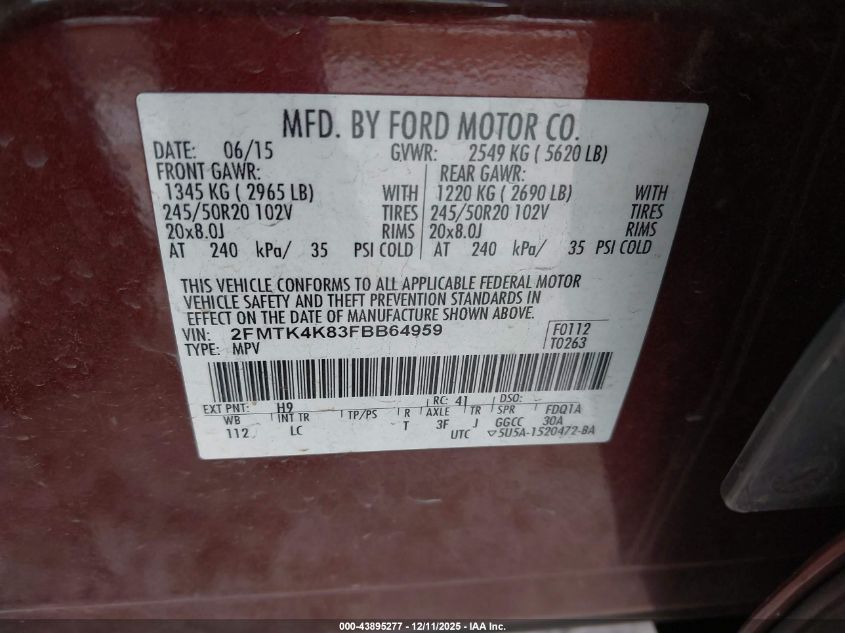 2015 FORD EDGE 2015 року Бензин, 3.5, Повний привід, vin - 2FMTK4K83FBB64959 з США