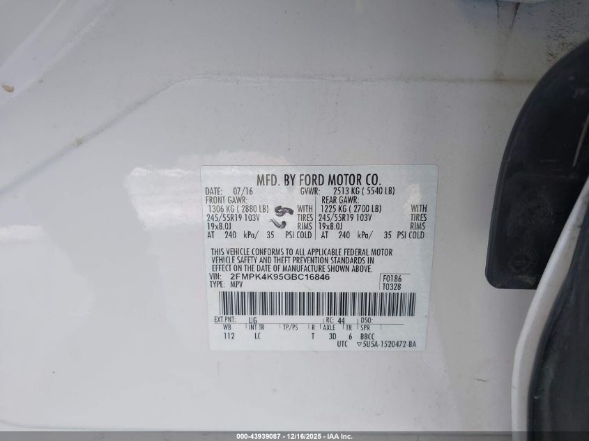2016 FORD EDGE 2016 року Бензин, 2.0, Повний привід, vin - 2FMPK4K95GBC16846 з США