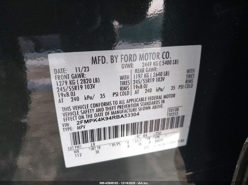 2024 FORD EDGE 2024 року Бензин, 2.0, Повний привід, vin - 2FMPK4K94RBA53304 з США