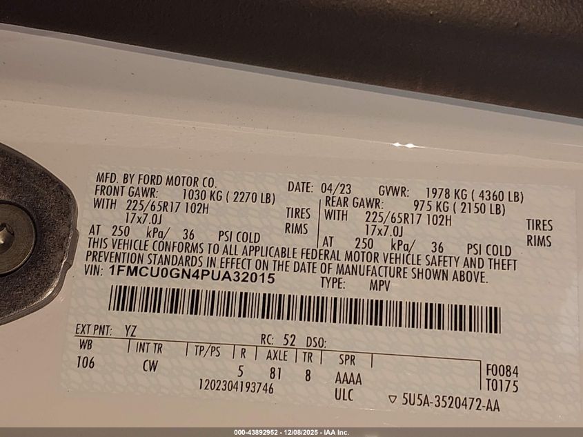 Колір БілийЦиліндри 3Привід Передній привідVIN 1FMCU0GN4PUA32015Стан Заводиться та їде (перевірено)Ушкодження Задня AutoRIA