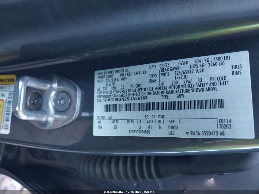 2025 FORD ESCAPE 2025 року Бензин, 1.5, Повний привід, vin - 1FMCU9GN2SUA86166 з США