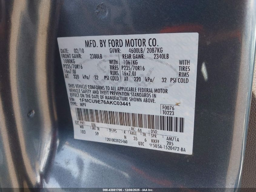 2010 FORD ESCAPE 2010 року Бензин, 2.5, Повний привід, vin - 1FMCU9E76AKC03441 з США