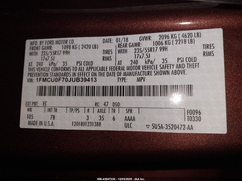 2018 FORD ESCAPE S