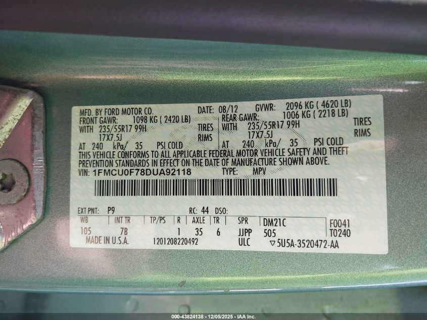 Колір СинійЦиліндри 4Привід Передній привідVIN 1FMCU0F78DUA92118Стан Заводиться та їде (перевірено)Ушкодження Передня або задня AutoRIA