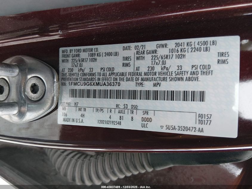 2021 FORD ESCAPE 2021 року Бензин, 1.5, Повний привід, vin - 1FMCU9G6XMUA36370 з США