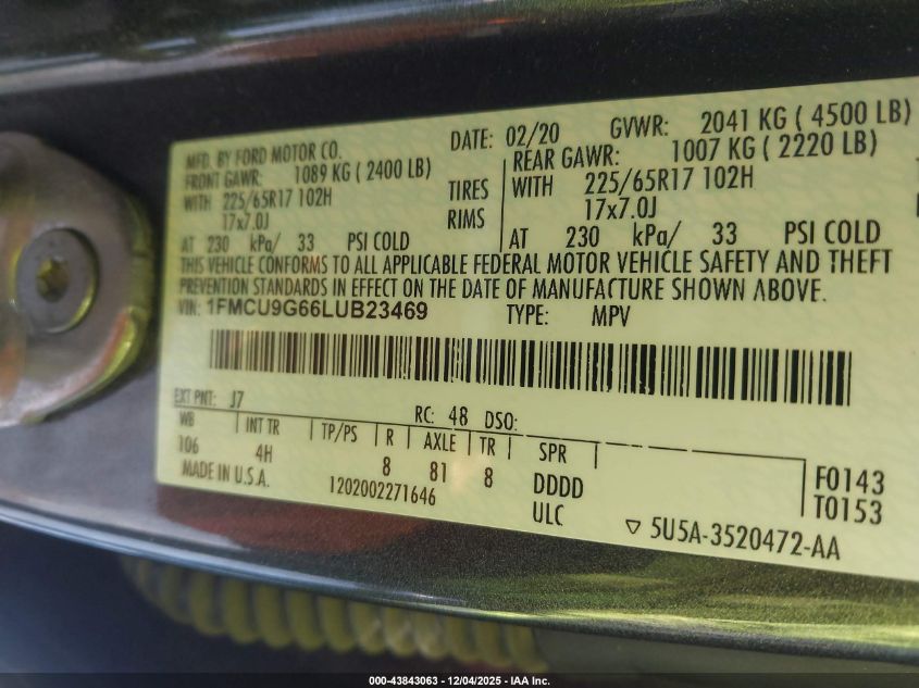 2020 FORD ESCAPE 2020 року Бензин, 1.5, Повний привід, vin - 1FMCU9G66LUB23469 з США