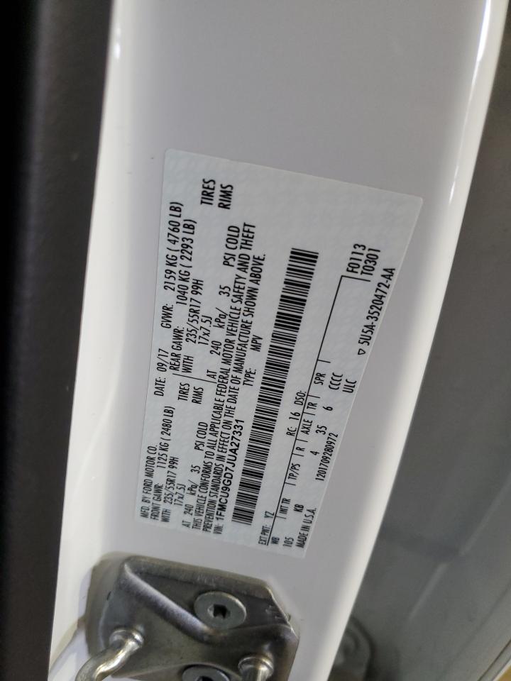 2018 FORD ESCAPE 2018 року Бензин, 1.5, 4x4 з переднім приводом, vin - 1FMCU9GD7JUA27331 з США