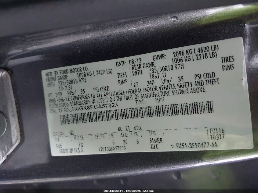 2014 FORD ESCAPE 2014 року Бензин, 1.6, Передній привід, vin - 1FMCU0GX8EUA57823 з США