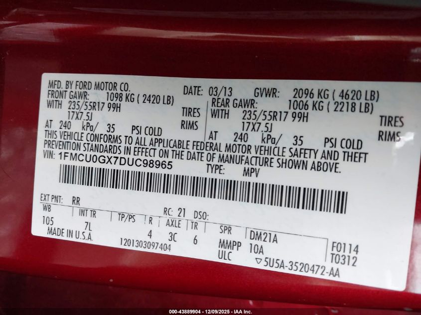 Колір ЧервонийЦиліндри 4Привід Передній привідVIN 1FMCU0GX7DUC98965Стан Заводиться та їде (перевірено)Ушкодження Ліва сторона AutoRIA