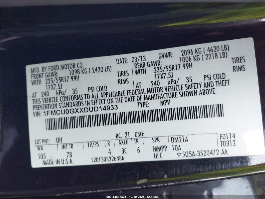 Колір ЧорнийЦиліндри 4Привід Передній привідVIN 1FMCU0GXXDUD14933Стан Заводиться та їде (перевірено)Ушкодження Ліва сторона AutoRIA