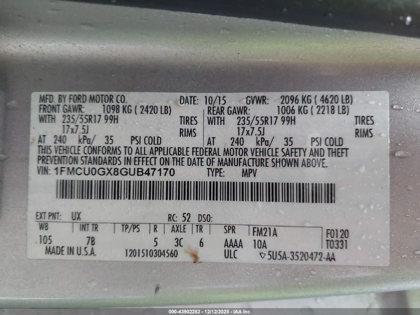 Колір СрібнийЦиліндри 4Привід Передній привідVIN 1FMCU0GX8GUB47170Стан СтаціонарноУшкодження Пожежа AutoRIA