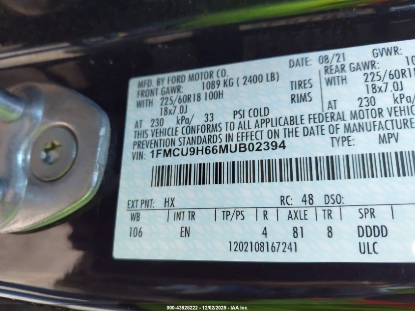 2021 FORD ESCAPE 2021 року Бензин, 1.5, Повний привід, vin - 1FMCU9H66MUB02394 з США