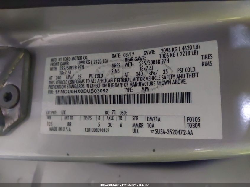 Колір СрібнийЦиліндри 4Привід Передній привідVIN 1FMCU0HX0DUB03092Стан Заводиться та їде (перевірено)Ушкодження Передня права AutoRIA