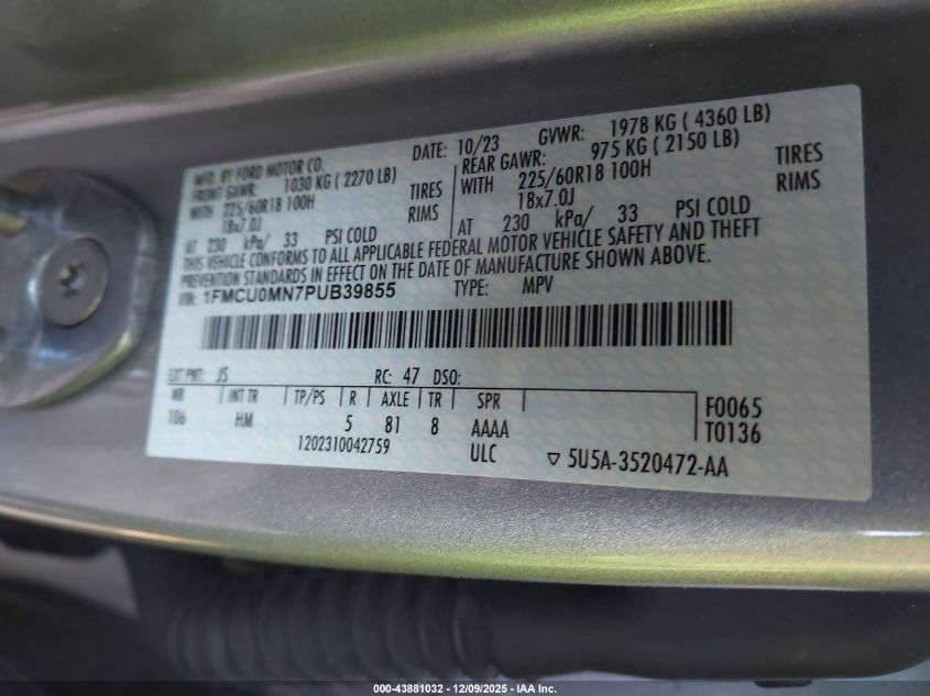 2023 FORD ESCAPE 2023 року Бензин, 1.5, Передній привід, vin - 1FMCU0MN7PUB39855 з США
