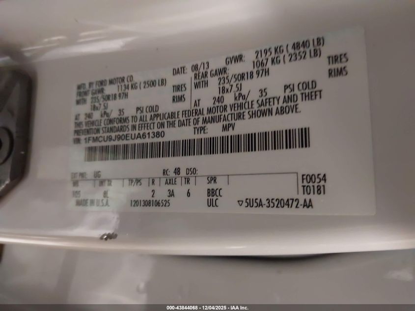 2014 FORD ESCAPE 2014 року Бензин, 2.0, Повний привід, vin - 1FMCU9J90EUA61380 з США