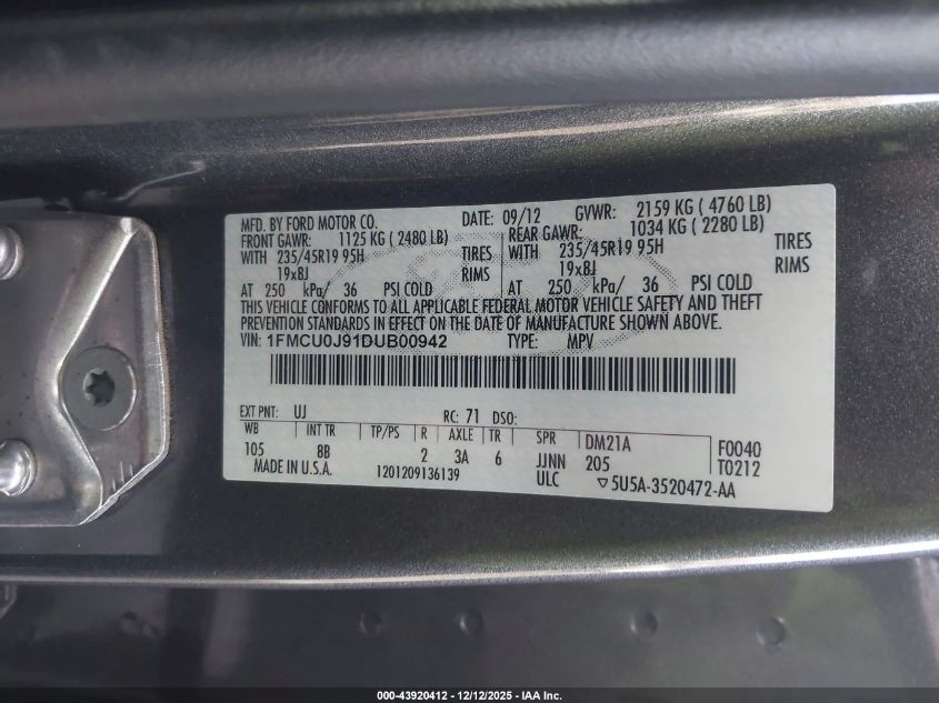 2013 FORD ESCAPE 2013 року Бензин, 2.0, Передній привід, vin - 1FMCU0J91DUB00942 з США