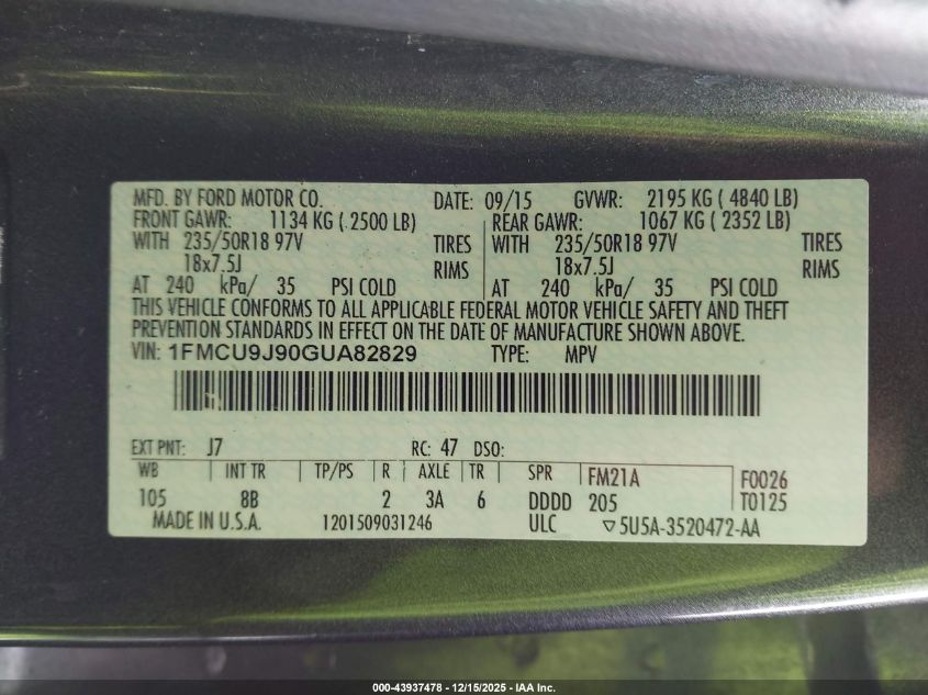 2016 FORD ESCAPE 2016 року Бензин, 2.0, Повний привід, vin - 1FMCU9J90GUA82829 з США