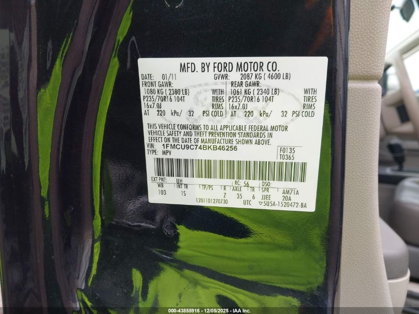 Колір ЧорнийЦиліндри 4Привід Повний привідVIN 1FMCU9C74BKB46256Стан СтаціонарноУшкодження Передня ліва AutoRIA