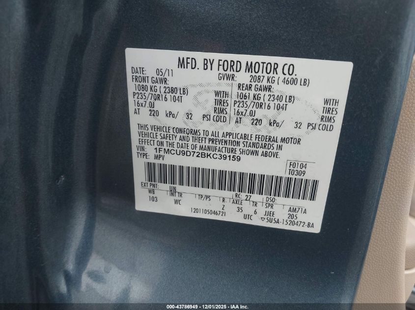 2011 FORD ESCAPE 2011 року Бензин, 2.5, Повний привід, vin - 1FMCU9D72BKC39159 з США