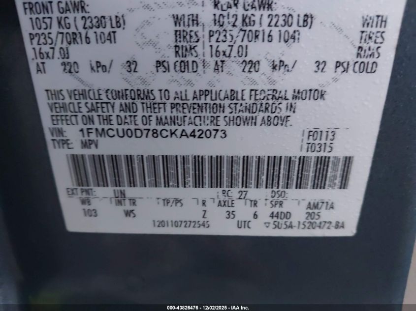 Колір СинійЦиліндри 4Привід Передній привідVIN 1FMCU0D78CKA42073Стан СтаціонарноУшкодження Передня права AutoRIA