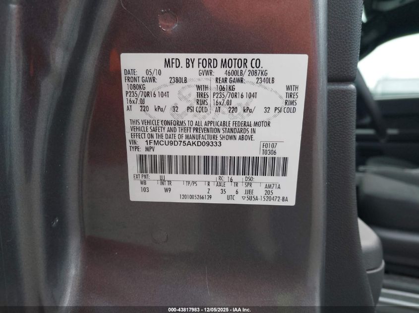 2010 FORD ESCAPE 2010 року Бензин, 2.5, Повний привід, vin - 1FMCU9D75AKD09333 з США