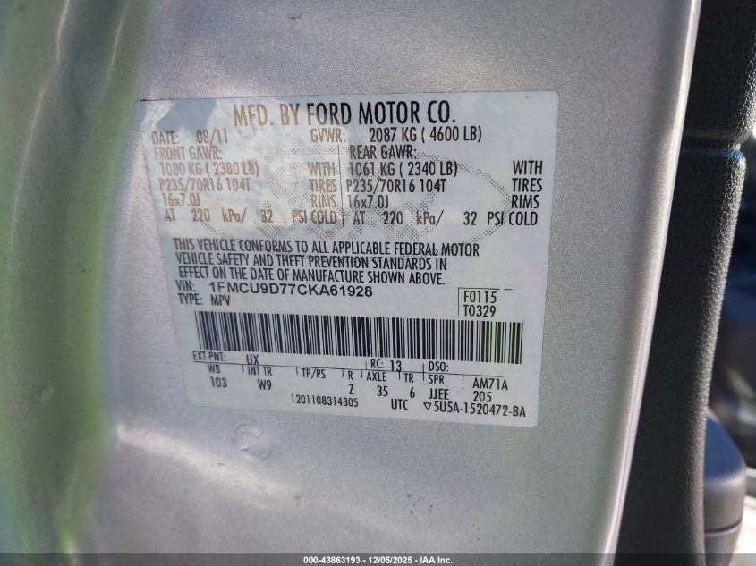 2012 FORD ESCAPE 2012 року Бензин, 2.5, Повний привід, vin - 1FMCU9D77CKA61928 з США