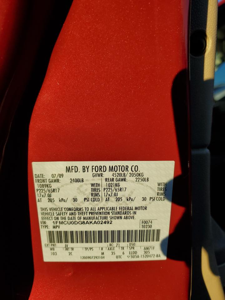 Колір ЧервонийЦиліндри 6VIN 1FMCU0DG8AKA02492Стан Заводиться та їде (перевірено)Ушкодження Передня або задня AutoRIA