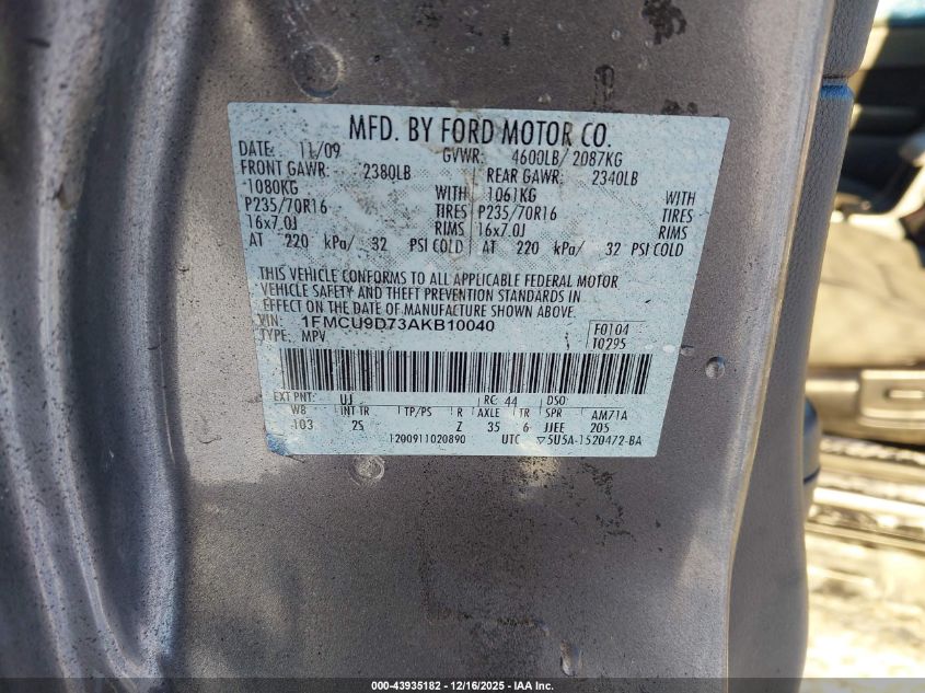 2010 FORD ESCAPE 2010 року Бензин, 2.5, Повний привід, vin - 1FMCU9D73AKB10040 з США
