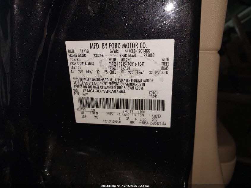 Колір ЧорнийЦиліндри 4Привід Передній привідVIN 1FMCU0D75BKA93464Стан Заводиться та їде (перевірено)Ушкодження Передня або задня AutoRIA