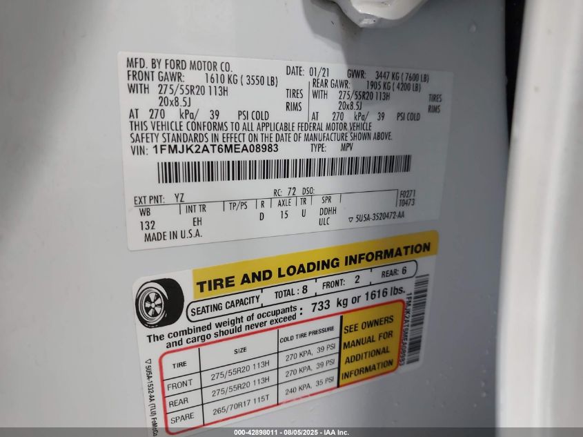 2021 FORD EXPEDITION 2021 року Бензин, 3.5, Повний привід, vin - 1FMJK2AT6MEA08983 з США