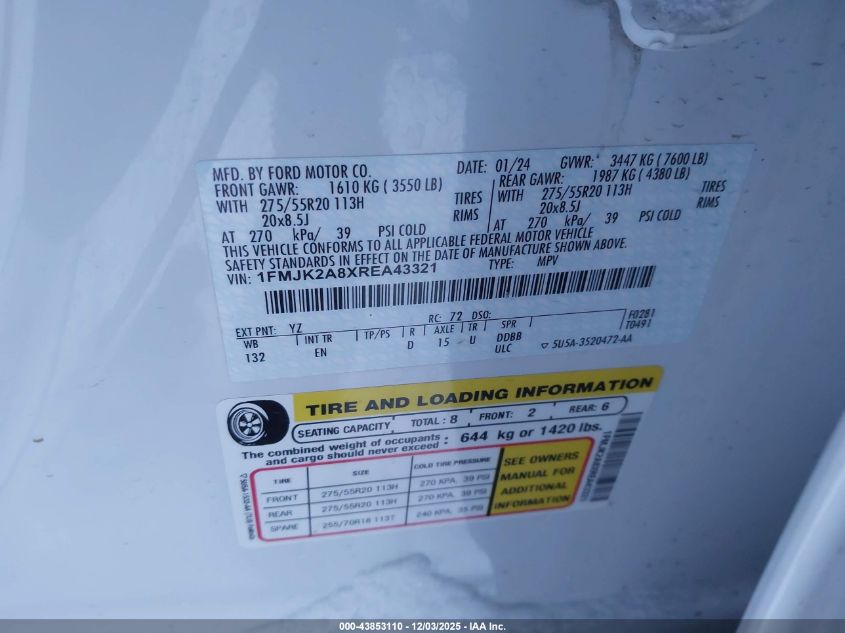 2024 FORD EXPEDITION 2024 року Бензин, 3.5, Повний привід, vin - 1FMJK2A8XREA43321 з США