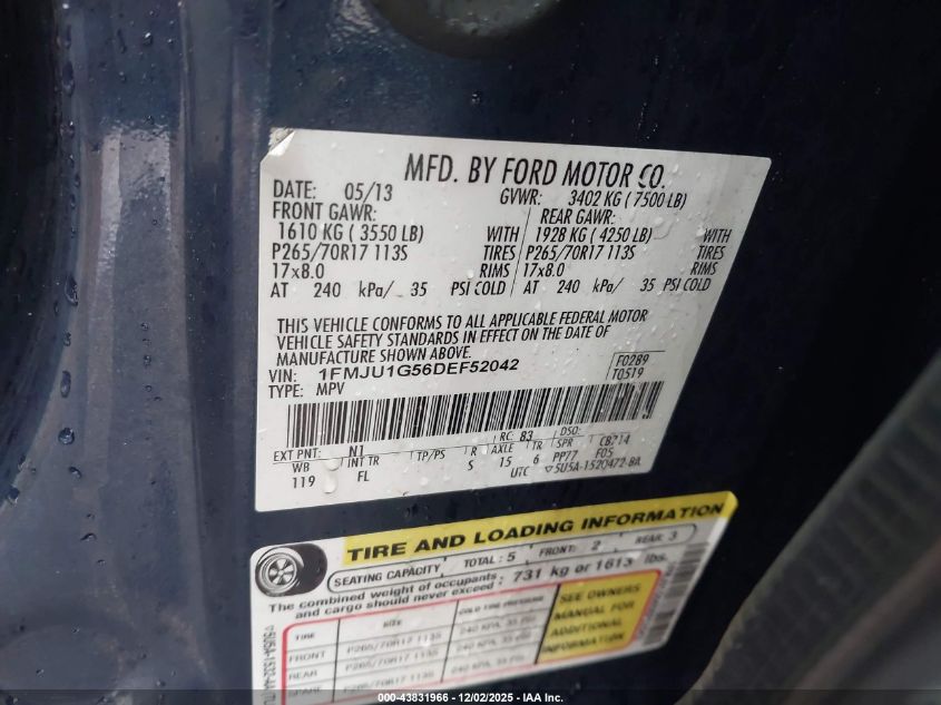 Колір СинійЦиліндри 8Привід Повний привідVIN 1FMJU1G56DEF52042Стан Заводиться та їде (перевірено)Ушкодження Передня або задня AutoRIA