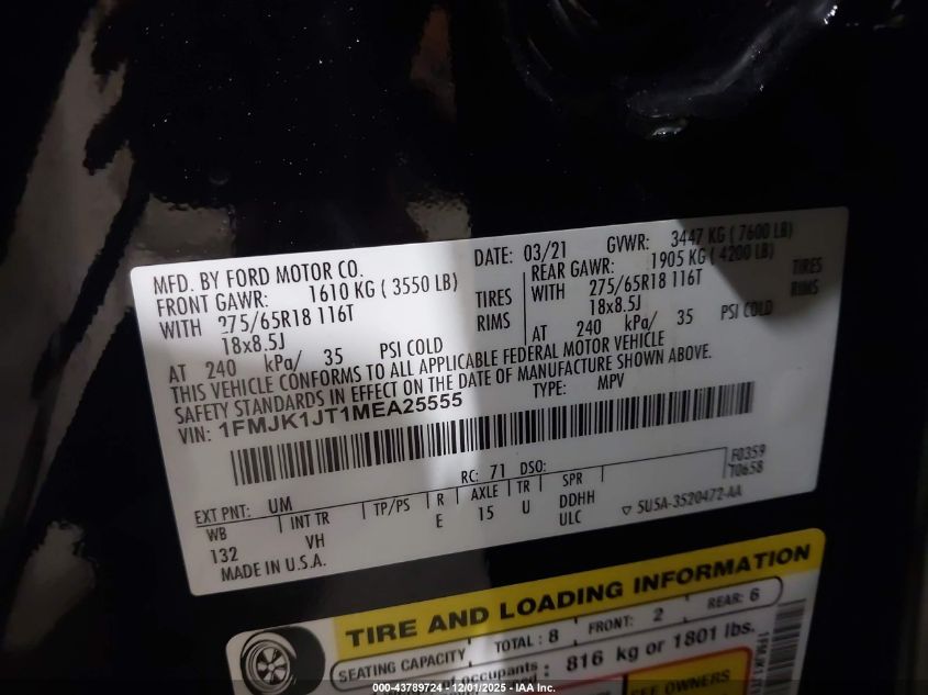 2021 FORD EXPEDITION 2021 року Бензин, 3.5, Повний привід, vin - 1FMJK1JT1MEA25555 з США