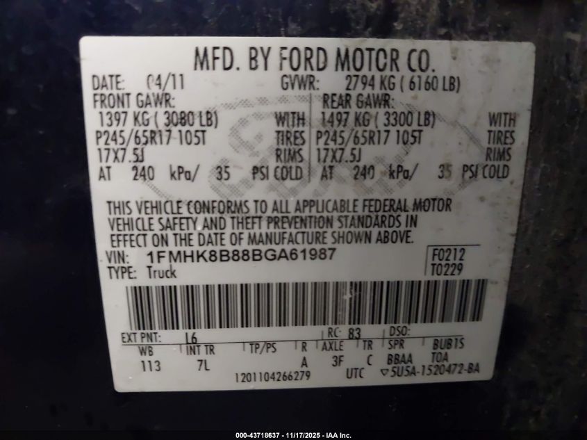Колір СинійЦиліндри 6Привід Повний привідVIN 1FMHK8B88BGA61987Стан СтаціонарноУшкодження Передня або задня AutoRIA