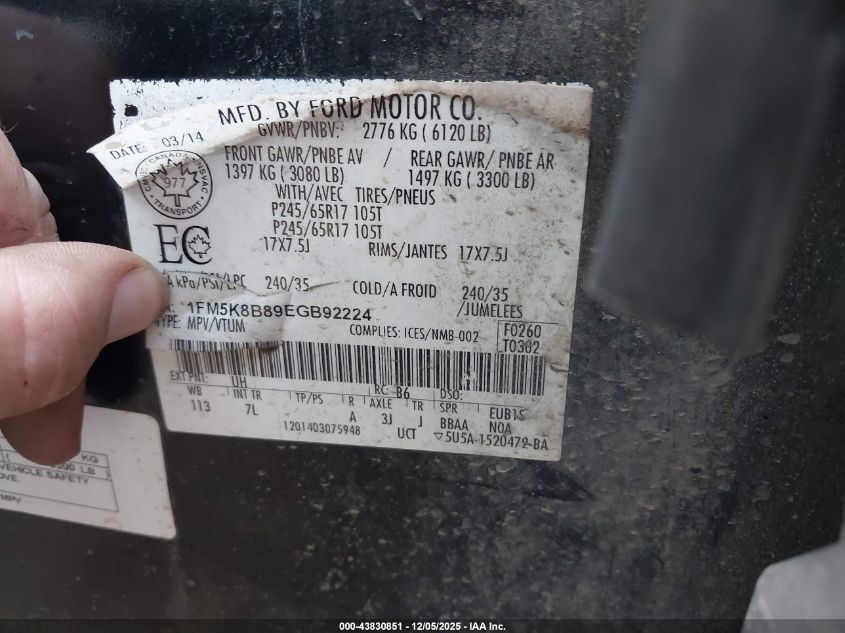 Колір ЧорнийЦиліндри 6Привід Повний привідVIN 1FM5K8B89EGB92224Стан СтаціонарноУшкодження Передня або задня AutoRIA