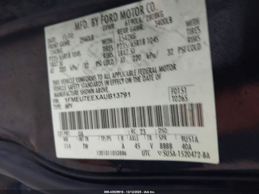 Колір ЧорнийЦиліндри 6Привід Повний привідVIN 1FMEU7EEXAUB13791Стан Заводиться та їде (перевірено)Ушкодження Передня або задня AutoRIA