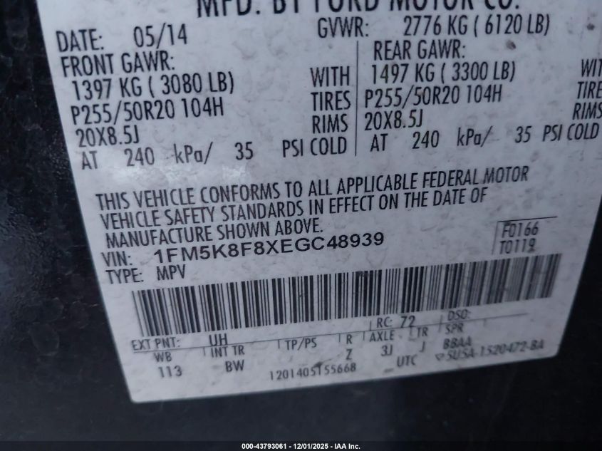 Колір ЧорнийЦиліндри 6Привід Повний привідVIN 1FM5K8F8XEGC48939Стан Заводиться та їде (перевірено)Ушкодження Передня ліва AutoRIA
